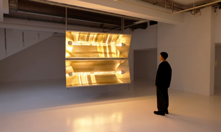 La instal·lació de Huaqian Zhang es va inaugurar dijous passat i parteix d’una recerca sobre la temperatura i el so que aprofundeix en la manera com la percepció s’obre pas per canals somàtics, més enllà del llenguatge. Quan mirem aquesta escultura lumínica, no es produeix cap tipus de claror, sinó una mena de sobreexposició.