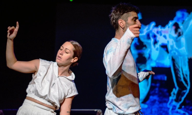 La performance combina elements de circ contemporani amb tecnologies interactives per plantejar què és el plaer. Foto cedida