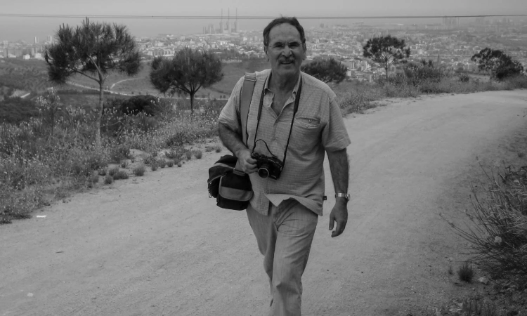 El fotoperiodista Joan Guerrero caminant càmera en mà. Foto cedida